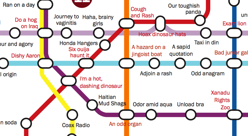 Back in 2008 I created the first anagrammed map of the Shanghai Metro. Since then the Shanghai Metro has added lots of new stations and lines and is now the longest metro system in the world, so I thought it was about time to bring the anagram map up to date!