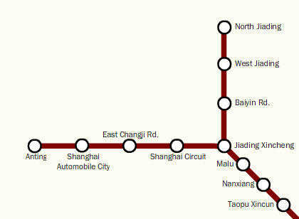 The Shanghai Metro Company has announced that final testing is taking place on the new Line 11 branch line. The line is expected to open before the Formula 1 race at the Shanghai International Circuit takes place on the weekend of 16th - 18th April. The new stations on Line 11 will be