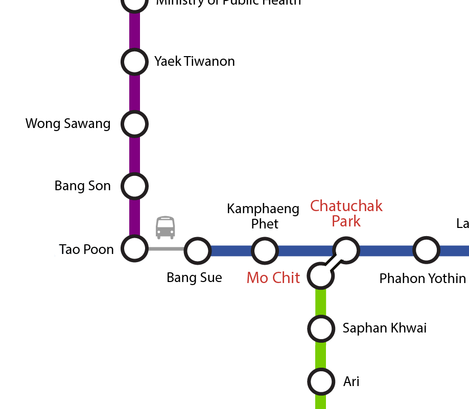 Unfortunately there is not yet an interchange with the existing Blue Line, so at the moment travellers will need to take a free shuttle bus between Tao Poon and Bang Sue, the terminus of the Blue line. There are 15 buses in total, and shuttles will leave every 8 minutes, with the 1km journey taking between 7 and 12 minutes, depending on Bangkok's notorious traffic.